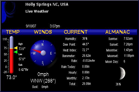 | Barometer | 29.62in Rate -0.034in/hr |